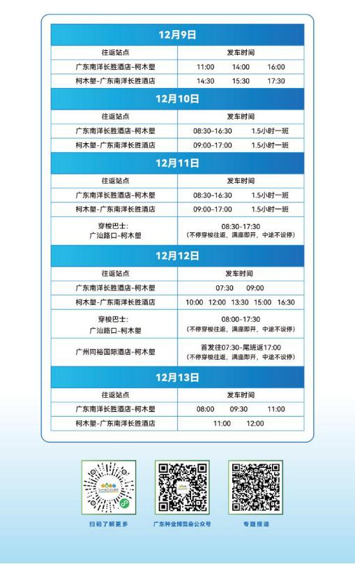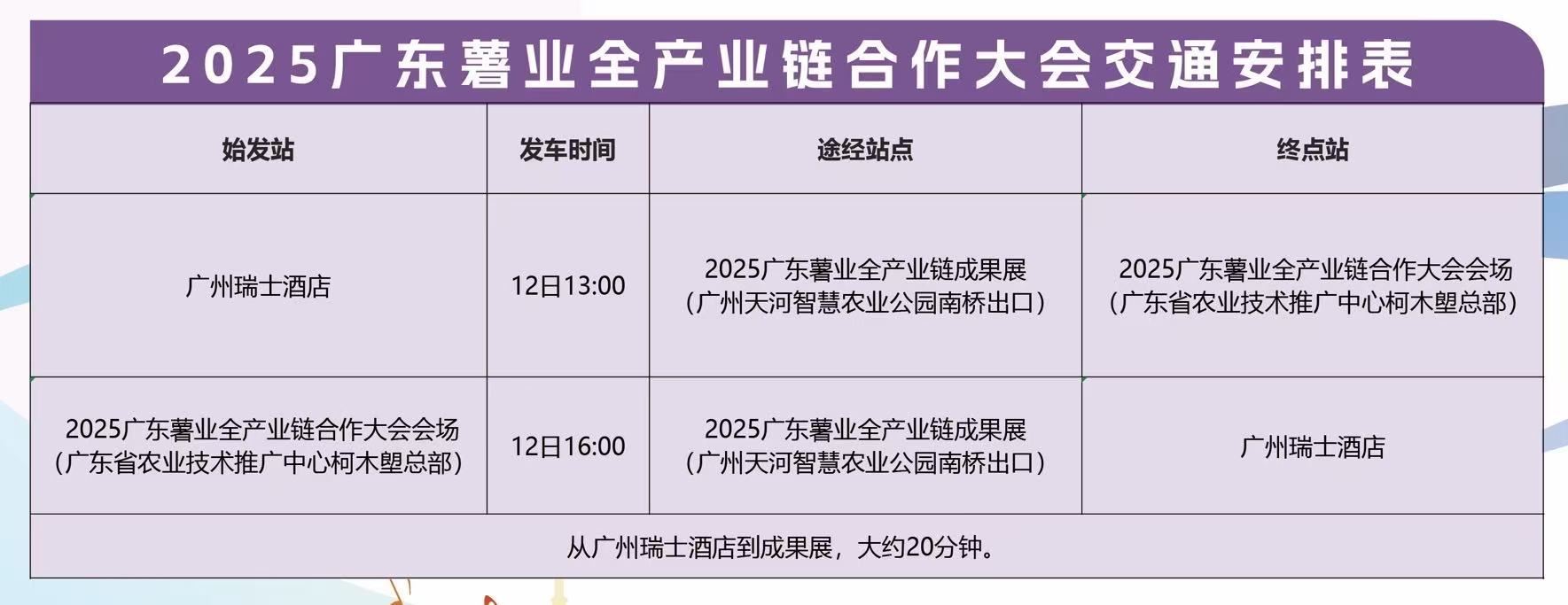 本次会议不安排接站,到柯木塱基地的参考路线如下:展会地址位于广州市天河区柯木塱南路30号,前往参观可在百度地图、高德地图输入导航“广东种业博览会综合展馆”。